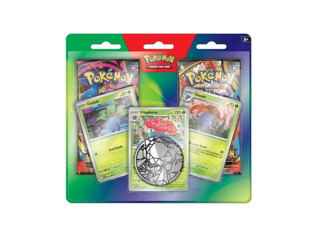 Rozšiřte svou sbírku o sílu travního typu. Pokémon TCG – Enhanced 2-Pack Blister booster s trojicí Oddish, Gloom a Vileplume přináší nejen dvě booster balení, ale i speciální promo karty a stylovou sběratelskou minci.